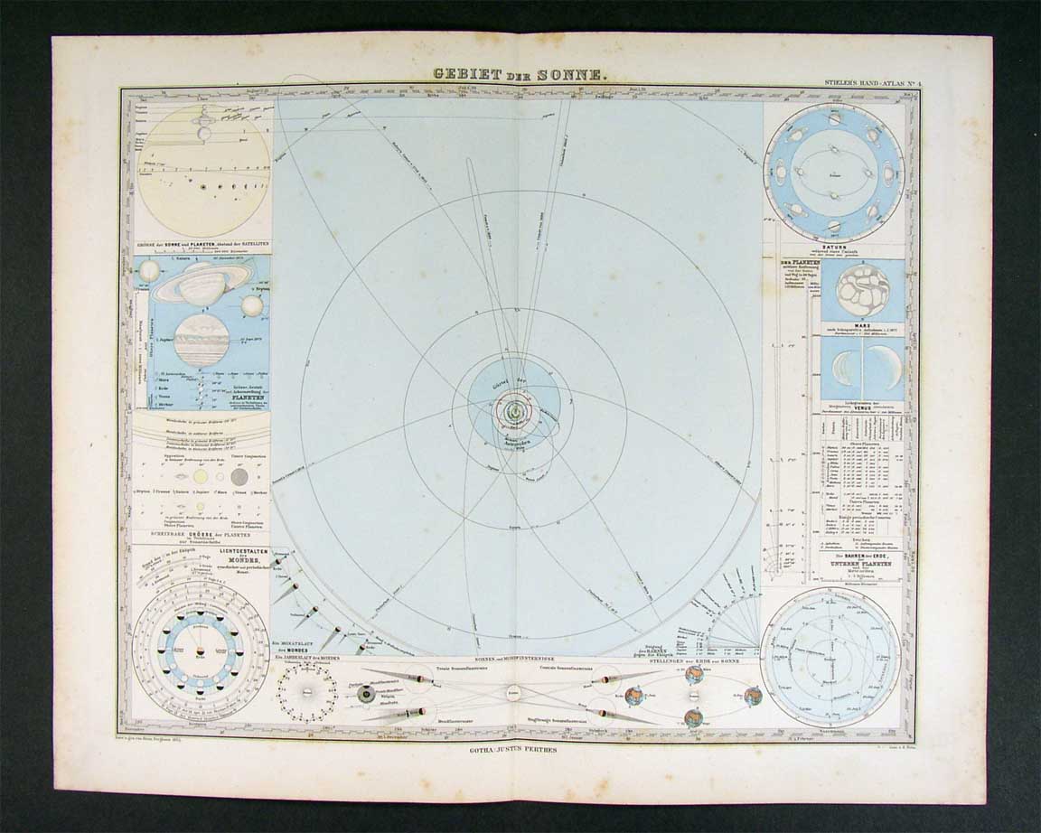 Description: It is an original antique map approximately 130 years old with lithograph color and a centerfold as issued. It is from the 1882 edition of Stieler's Hand Atlas, published in Gotha by Justus Perthes. The publisher and date are shown on the map in the bottom margin and the name of the atlas is in the upper right corner. The map is not mounted nor matted, being sold as a single sheet as seen in the first pic. The Stieler maps are some of the most detailed of the 19th century in the German tradition of cartography.