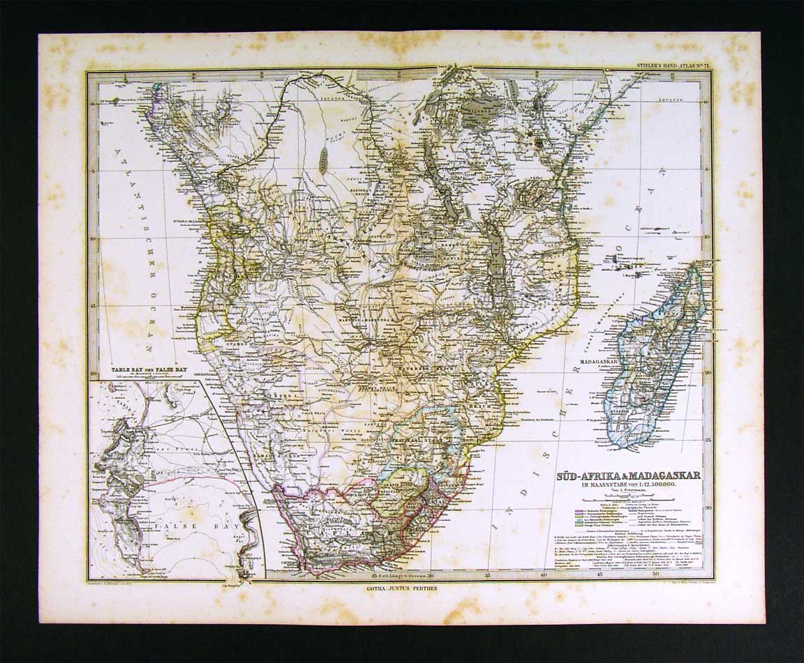 Description: It is an original antique map approximately 130 years old with original hand coloring and a centerfold as issued. It is from the 1882 edition of Stieler's Hand Atlas, published in Gotha by Justus Perthes. The publisher and date are shown on the map in the bottom margin and the name of the atlas is in the upper right corner. The map is not mounted nor matted, being sold as a single sheet as seen in the first pic. The Stieler maps are some of the most detailed of the 19th century in the German tradition of cartography.