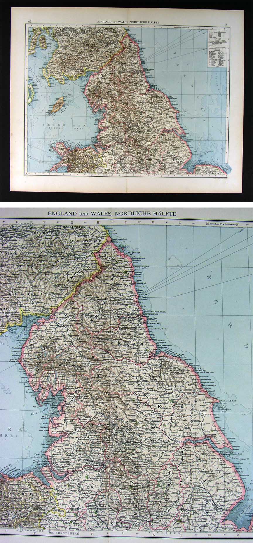 1896 Andrees Map N England Scotland Isle of Man Britain