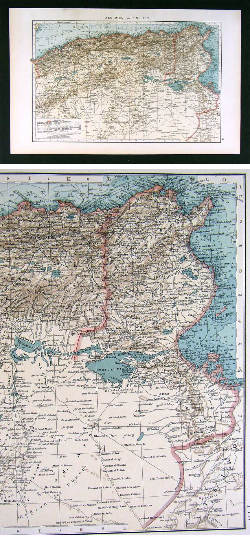 1896 Map North Africa Algeria Tunisia Tunis Sahara