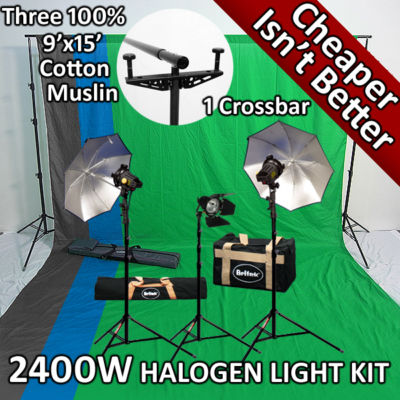 Britek#24BBGH1915 2400w Photography backdrop Stand Continuous Light Kit with Black&Blue&Green muslin