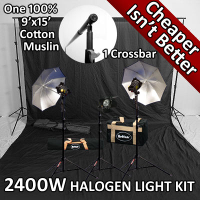 Britek#24Bk11915 2400w Photography Background Studio Lighting Kit with black muslin