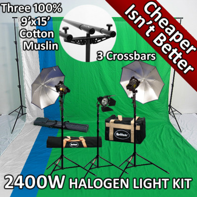 Britek#24WBeGH3915 2400w Photography backdrop Stand Continuous Light Kit with White&Green&Blue muslin
