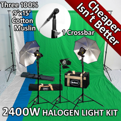 Britek#24WBeG11915 2400w Photography backdrop Stand Continuous Light Kit with White&Green&Blue muslin