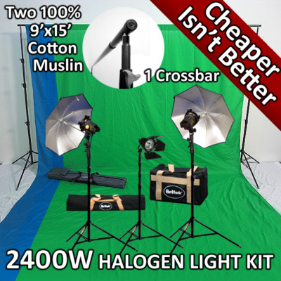 Britek#24BeG11915 2400w Photography backdrop Stand Continuous Light Kit with Green&Blue muslin
