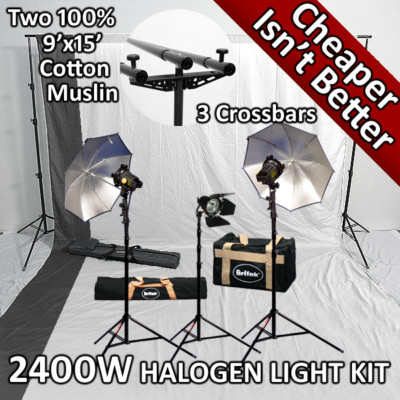 Britek#24WBkH3915 2400w Photography backdrop Stand Continuous Light Kit with White&Black muslin