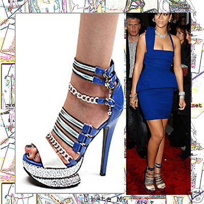 Rihanna style fancy blue bootie heels US5.5-8 leather