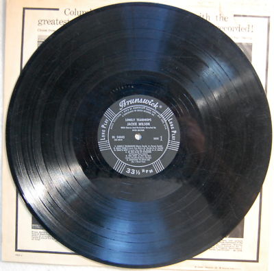 What a great LP! Jackie Wilson sounds great! This is a hard to find album that plays through. The vinyl would be graded a G and can be enjoyed. The cover is still very structurally sound and has some loss of gloss and slight corner wear, but no splits and decent corners. The record is still stored in the original dust jacket.