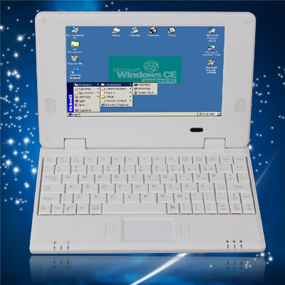 The Best Valuable Christmas's Gift for Your Children!!!! Don't Missing It!! Specification | System: Windows CE 5.0 | Processor: ARM framework multimedia CPU | Memory: 128M | Storage: 2GB NAND Flash MLC, support USB flash disk and MMC/SD card expansion | Display Diagonal Size: 7' | Max Resolution: 800x480 | LCD Display: TFT-LCD, True color image display | Battery: 1800mAh (Around 6-8 hours) | Sound Card: AC97 voice card | Power Supply: AC 100-240V 50/60Hz(Input),DC 9V / 1.5Ah(output) | Keyboard: Standard 80 Key | Weight: 0.7kg | Size: 21.2 x 14.2 x 3.3cm | Port&Jack | 3x USB 2.0 (Right side x2, Rear side x1) | 1x SDCard slot (Left side) | 1x Headset jack & 1x Mic jack (Left side) | 1x LAN RJ-45 port (Rear side) | 1x DC power input (Rear side) | 1x Reset button(Bottom side) | Ethernet | Brodband internet access | Build in Wireless LAN adapter | 10/100MB eternet port | Wireless Protocol: WiFi | Content | 1x 7' Notebook | 1x US AC charger + UK charge pluc | |