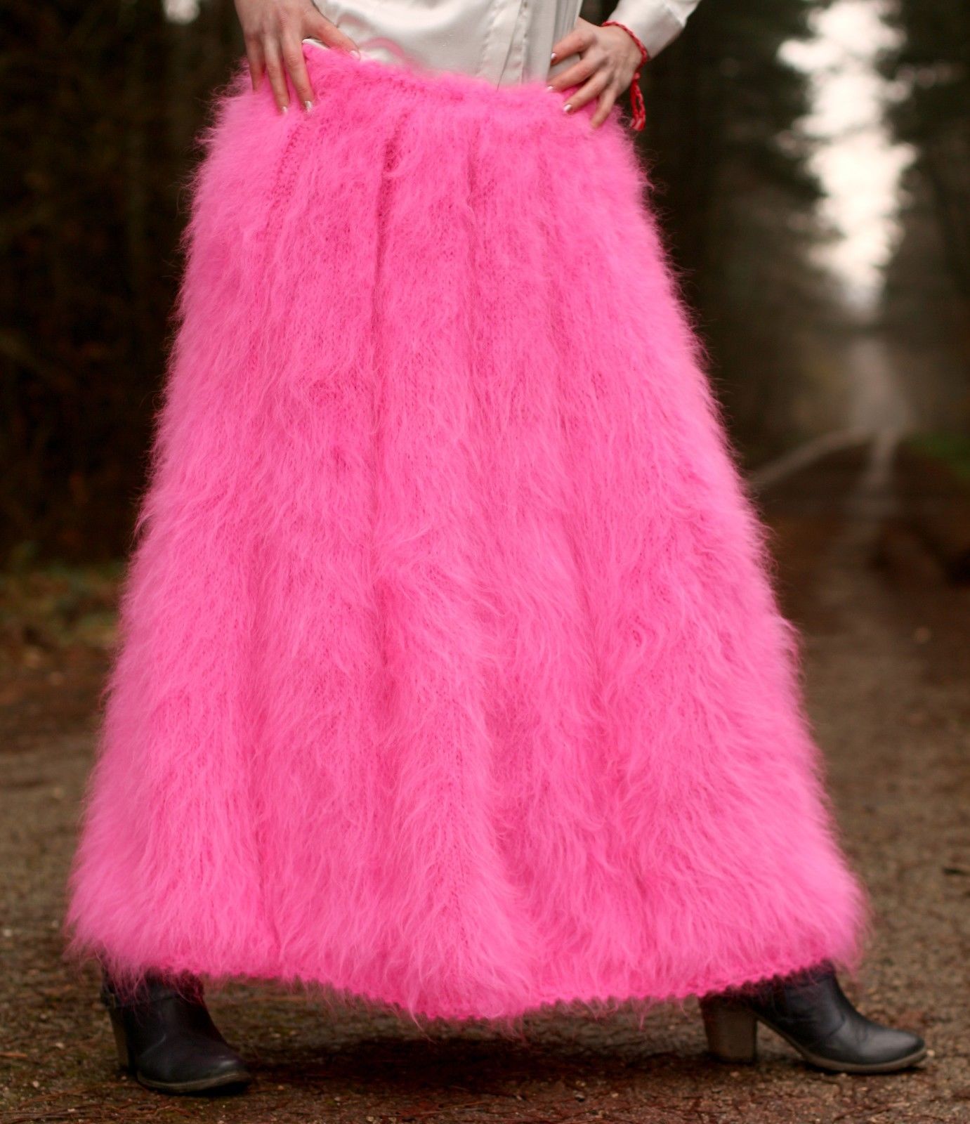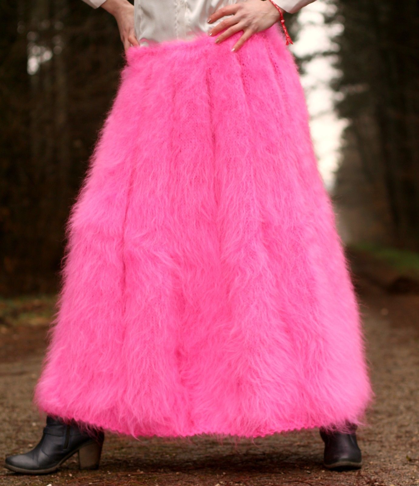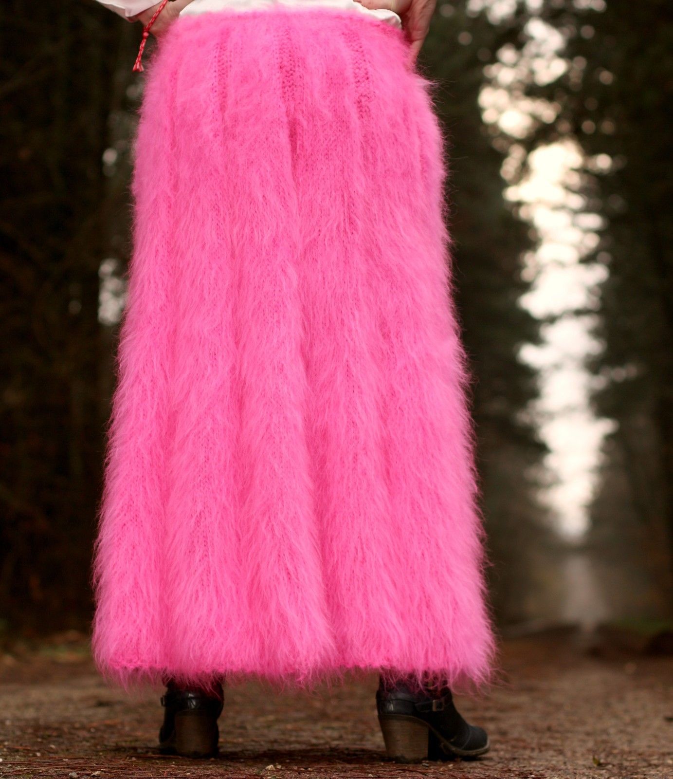 The AMAZING halo of this skirt is achieved thanks to the luxury grade yarn, used and the skills in hand knitting acquired in many years of experience.