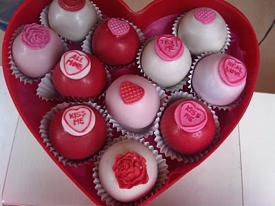 this is a package that includes a heart shaped box, and 11 cake pops without the lollipop sticks.