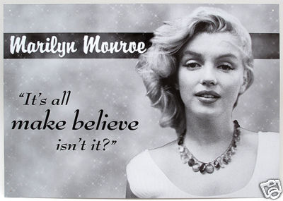 Tin Sign Marilyn Monroe Make Believe - 17.25" x 12.5" Metal sign holes punched in each corner with folded edges.