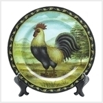 No farmhouse kitchen is complete without this colorful collectible glass platter! A proudly plumed rooster crows a "good morning" to the world, surrounded by the rich greens of the wide-open countryside. |
