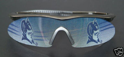 New from Sportsuperstoreusa.com / Teamfansonline.com, Officially licensed Duke Blue Devils  Sunglasses. The sunglasses that reflect your team spirit! Featured in the new contemporary style blade design frames. You can see out but no one can see into the lenses! These sunglasses utilize a patented technology that integrated the image onto the lens during the manufacturing process of the lenses. They provide 100% UV protection from the suns harmful and damaging rays. Heavy duty frames and durable polycarbonate lenses. We currently have over 100 NCAA Colleges and Universities as well as the MLB. Your order will be processed and shipped immediately upon verification of payment from PayPal. With our PayPal account we can accept payment even if you don't have an account with PayPal. Thanks for your business!