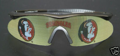 New from Sportsuperstoreusa.com / Teamfansonline.com, Officially licensed Florida State University  Sunglasses. The sunglasses that reflect your team spirit! Featured in the new contemporary style blade design frames. You can see out but no one can see into the lenses! These sunglasses utilize a patented technology that integrated the image onto the lens during the manufacturing process of the lenses. They provide 100% UV protection from the suns harmful and damaging rays. Heavy duty frames and durable polycarbonate lenses. We currently have over 100 NCAA Colleges and Universities as well as the MLB. Your order will be processed and shipped immediately upon verification of payment from PayPal. With our PayPal account we can accept payment even if you don't have an account with PayPal. Thanks for your business!