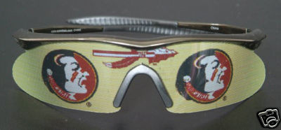 New from Sportsuperstoreusa.com / Teamfansonline.com, Officially licensed Florida State University  Sunglasses. The sunglasses that reflect your team spirit! Featured in the new contemporary style blade design frames. You can see out but no one can see into the lenses! These sunglasses utilize a patented technology that integrated the image onto the lens during the manufacturing process of the lenses. They provide 100% UV protection from the suns harmful and damaging rays. Heavy duty frames and durable polycarbonate lenses. We currently have over 100 NCAA Colleges and Universities as well as the MLB. Your order will be processed and shipped immediately upon verification of payment from PayPal. With our PayPal account we can accept payment even if you don't have an account with PayPal. Thanks for your business!