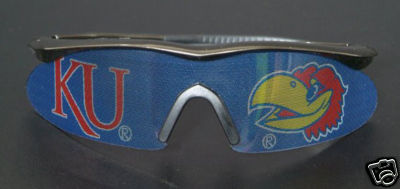 New from Sportsuperstoreusa.com / Teamfansonline.com, Officially licensed Kansas Jayhawks  Sunglasses. The sunglasses that reflect your team spirit! Featured in the new contemporary style blade design frames. You can see out but no one can see into the lenses! These sunglasses utilize a patented technology that integrated the image onto the lens during the manufacturing process of the lenses. They provide 100% UV protection from the suns harmful and damaging rays. Heavy duty frames and durable polycarbonate lenses. We currently have over 100 NCAA Colleges and Universities as well as the MLB. Your order will be processed and shipped immediately upon verification of payment from PayPal. With our PayPal account we can accept payment even if you don't have an account with PayPal. Thanks for your business!