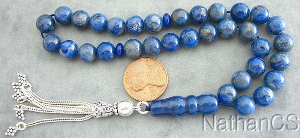 A very elegant Tesbih - Masbaha - presented by Tesbihci : ROUND DENIM LAPIS LAZULI in a very fine 33 bead strand.