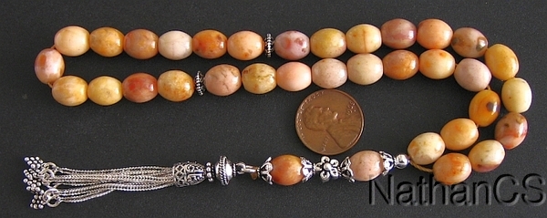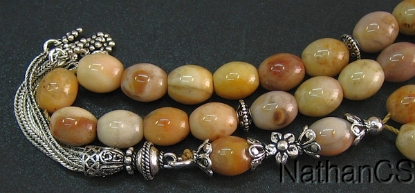 Prayer Worry Beads Tesbih Komboloi Golden Jade & Sterling Silver
