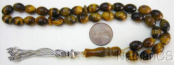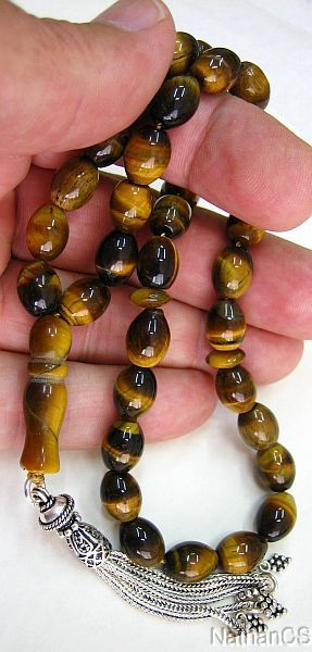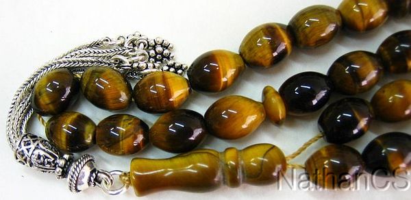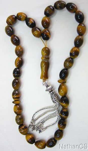 Tesbih Prayer Beads Komboloi Oval Tiger Eye and Sterling Silver