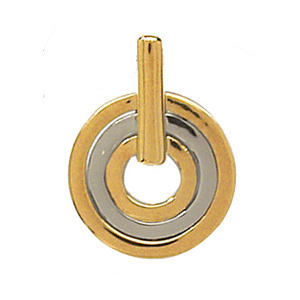 Pendant silver and gold plated round shaped. This pendant features three circles including two gold plated which enclose a circle of money. With this big attaches plated gold, this pendant is modern and very feminine.