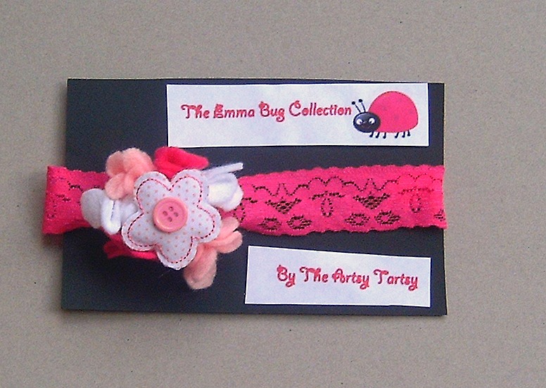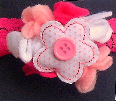 An adorable Infant toddler headband. Amazing Embroidery work. All hand sewn. "Tickle me Pink" features pretty flowers in pinks and white with an embroidered button center. The headband is a soft elastic, very gentle for your child's head. One of a kind, custom made.
