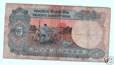 RS 5 NOTE I.G.PATEL EX-RARE NOTE TRACTOR BACK
