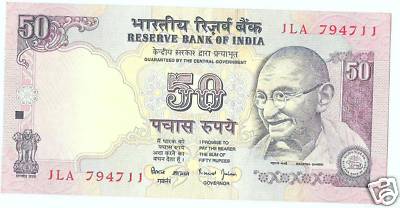 RS 50 DR.BIMAL JALAN PLAIN INSET MAHATMA GANDHI ISSUE.UNC.SERIAL NO....1LA/794711....RED SERIAL..VERY RARE NOTE .