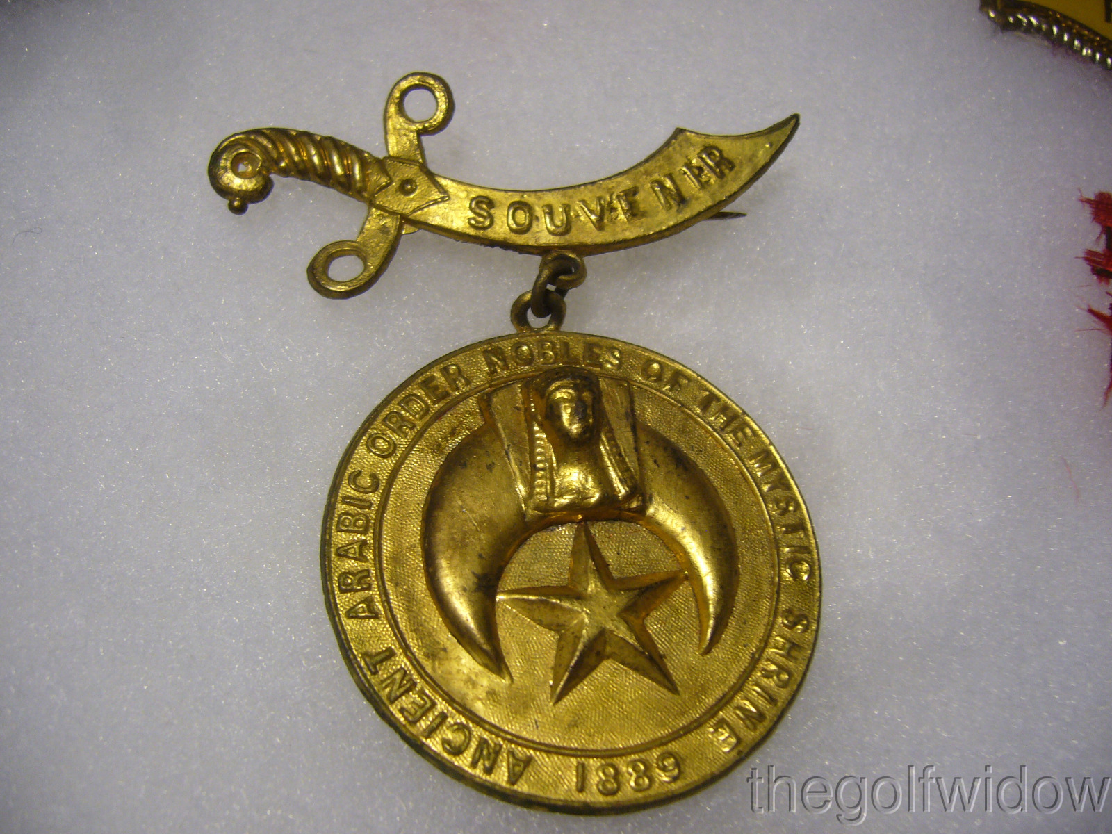 Ancient Arabic Order Nobles of The Mystic Shine 1889 Souvenir Pin in Gold