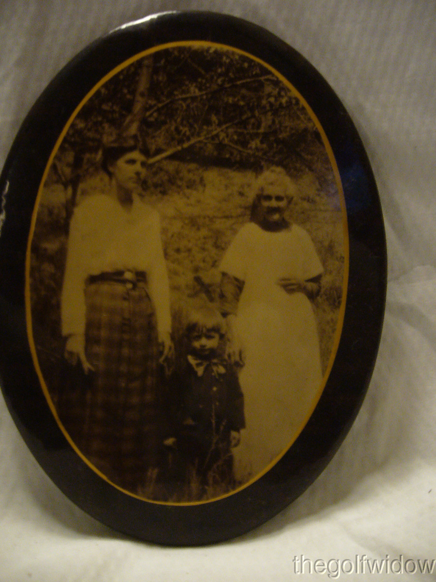 Antique Celluloid Oval Photo Mom, Grandma and Child Vintage Attire