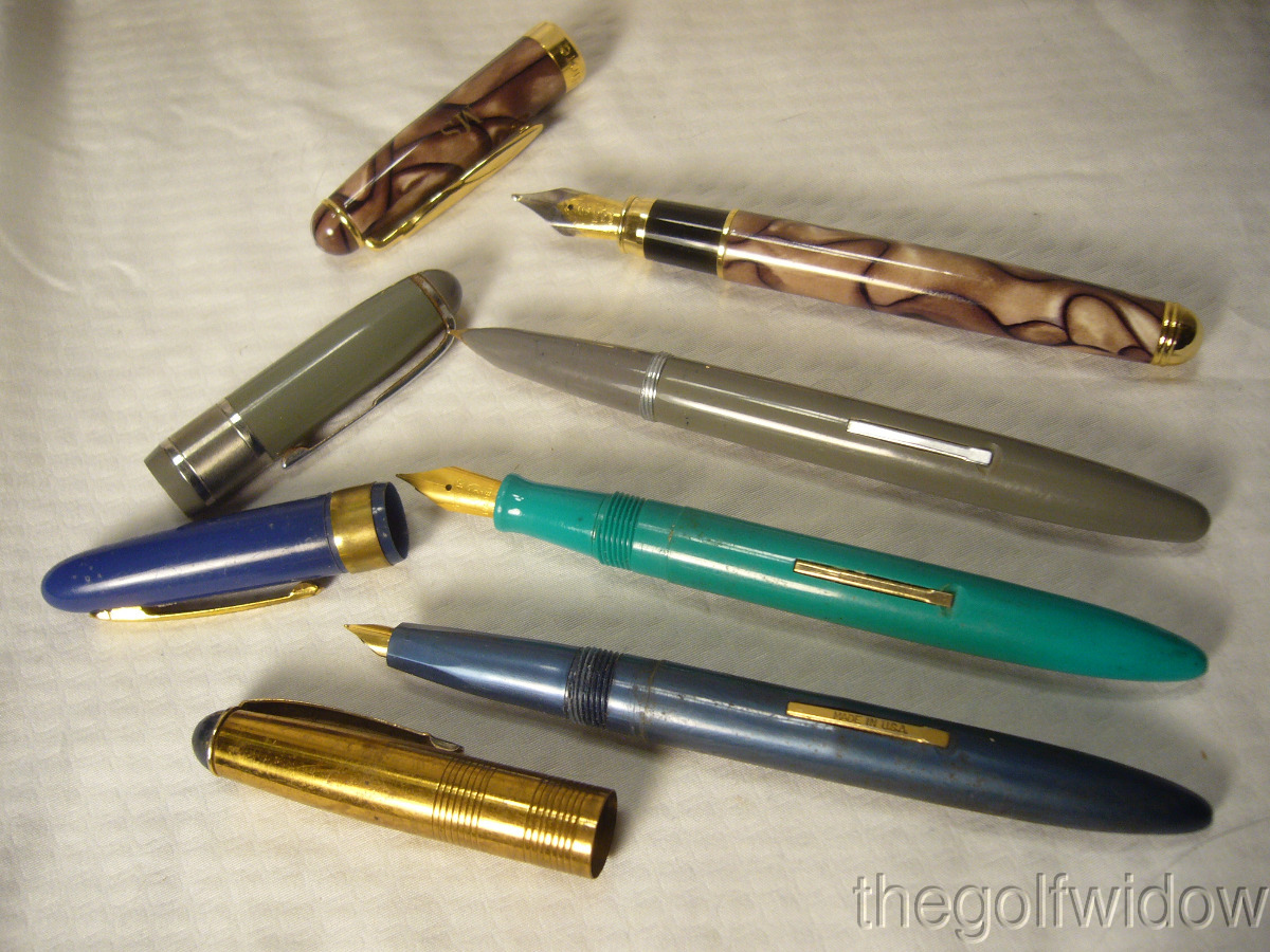 ​Four Vintage Fountain Pens 50's and Newer Venus, Montefiore,American&America - Montefiore is Marble Like and Gold Color, Iriodium Point Germany, Cartridge Type Very Good Condition