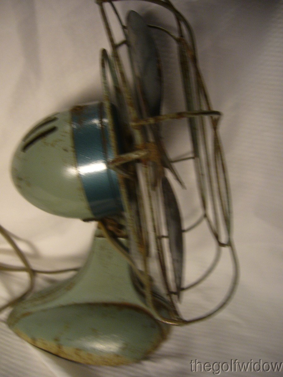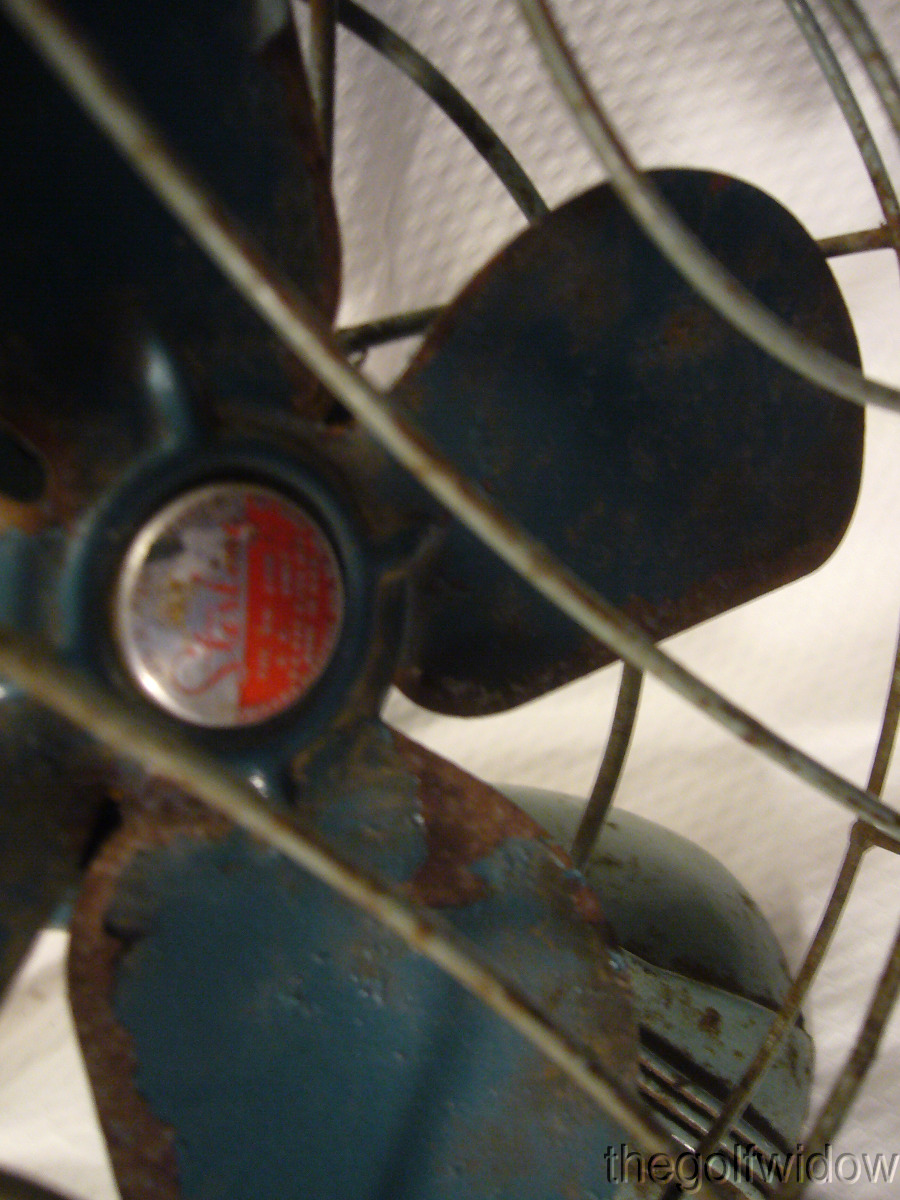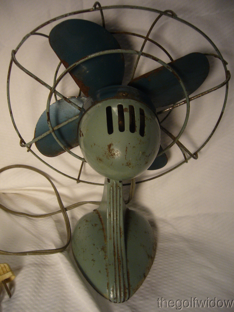 ​Vingtage Sterling Green Desk Fan 8 1/2 Inches Chicago Electric Silex Works - In Fair Condition with some rust on blade edges, and rust on base.
