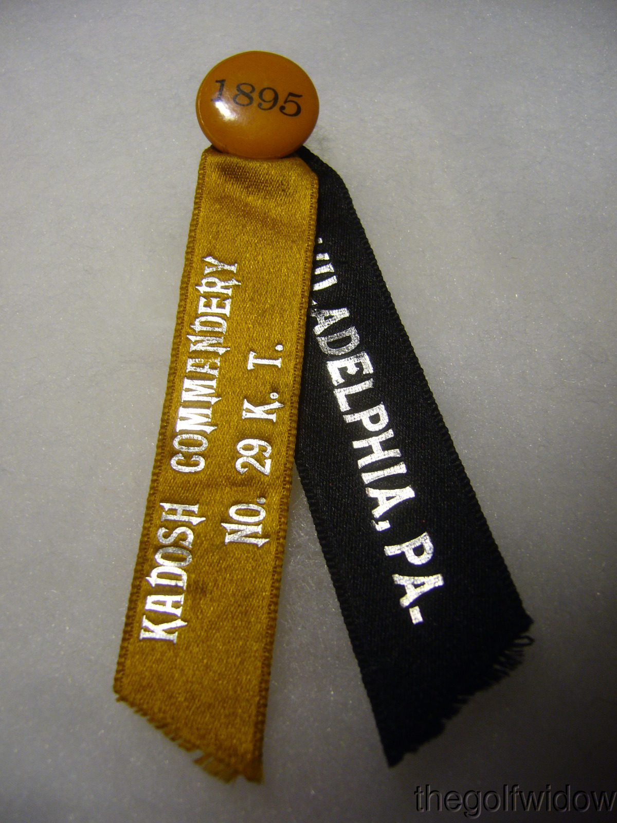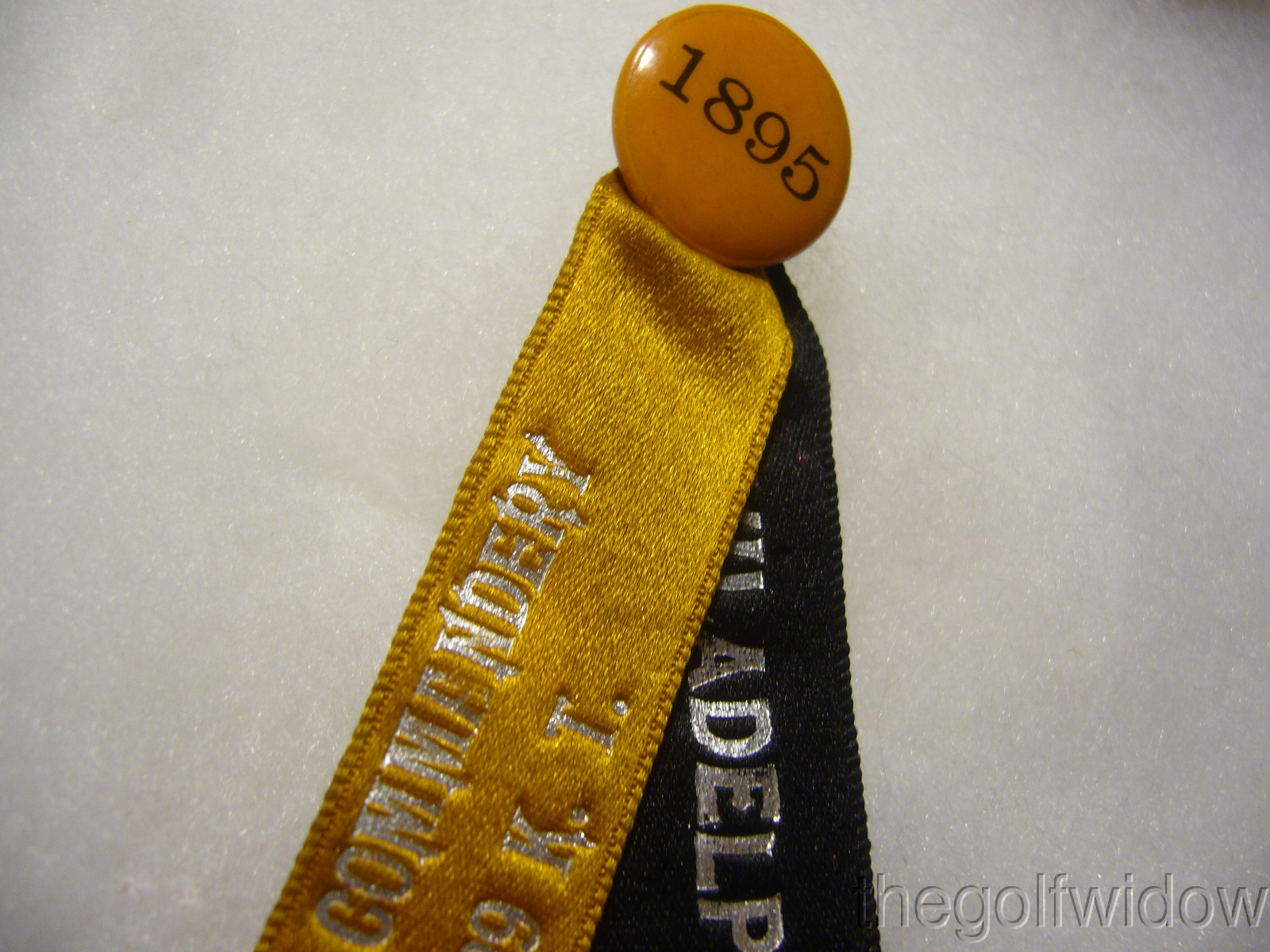 - 2nd 1895 Pin With Ribbons Attached Kadosh Commandery No. 29 K.T. and Blue Ribbon Philadelphia,Pa.