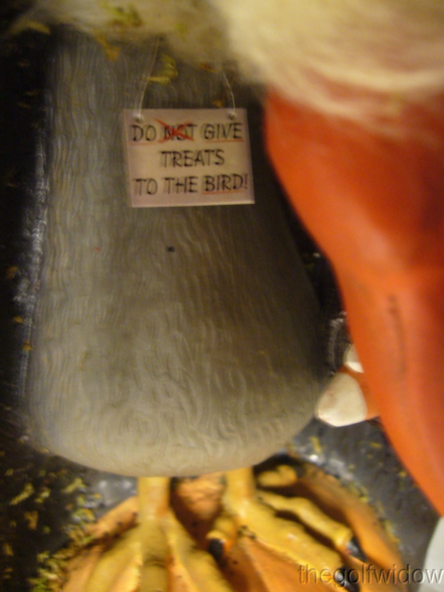 This silly buzzard is perched on top of his favorite pumpkin white