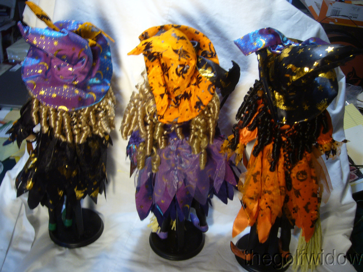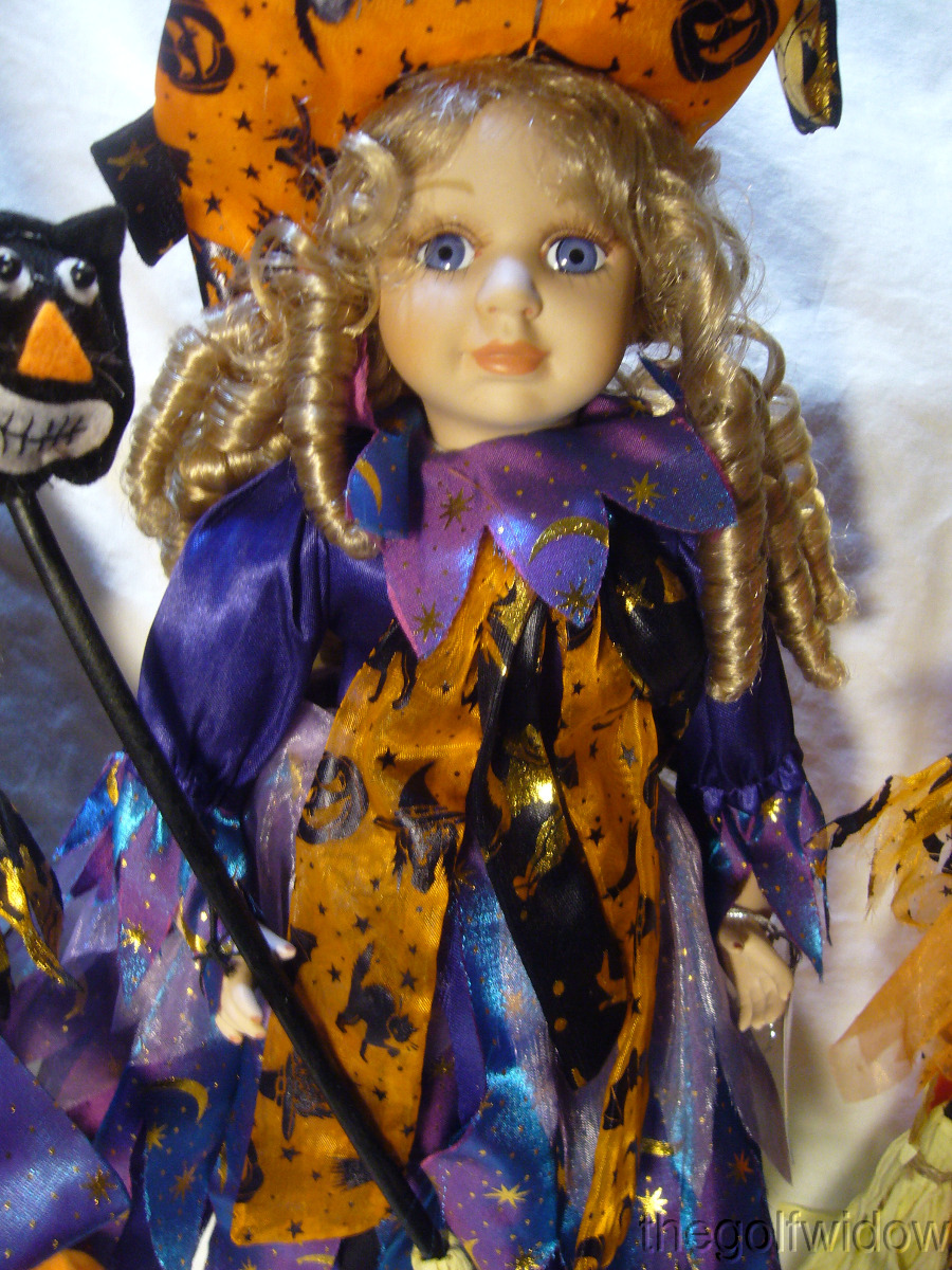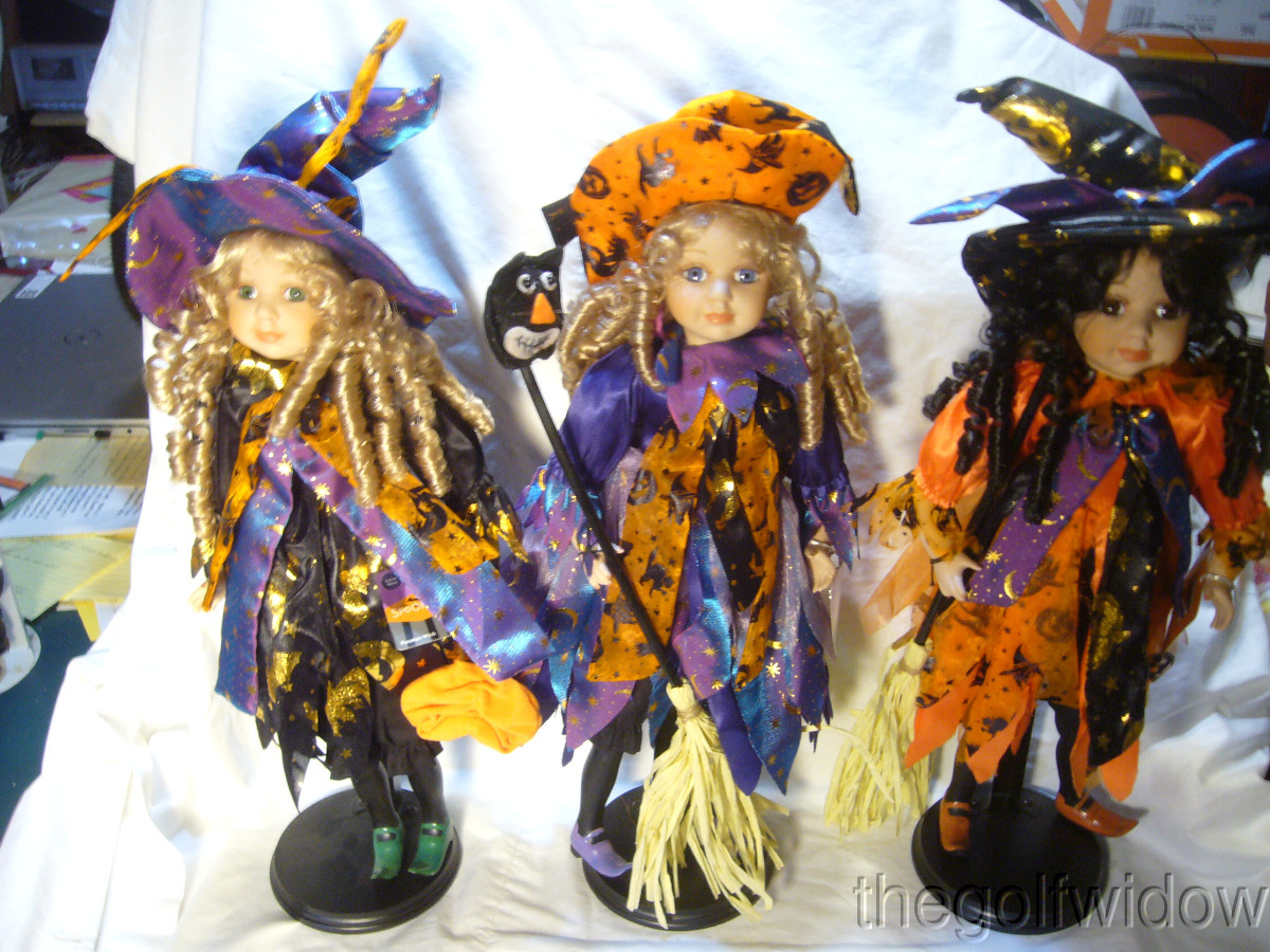 Three Beautiful Halloween Spooky Hollow Dolls on Stands with Tags Jo Ann Fabrics