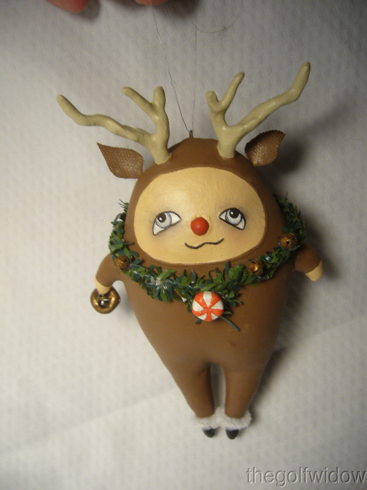 ​Bethany Lowe Christmas Ornament Robin Seeber Cute Reindeer with Greenery RS2126 - The Cutest Reindeer to Hang on your Tree