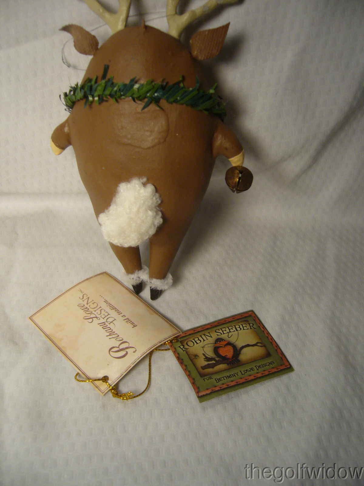 Bethany Lowe Christmas Ornment Robin Seeber Cute Reindeer with Greenery