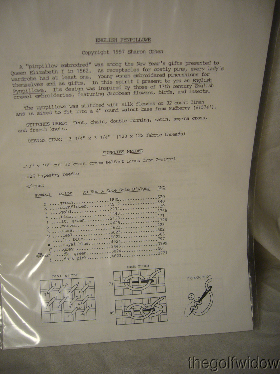 Nostalgic Needle English Pynpillowe Cross Stitch Pattern Sharon Cohen 1997 - Pinpillow Embrodered was a Gift for Queen Elizabeth I in 1562 and In This Spirit this Piece was Designed