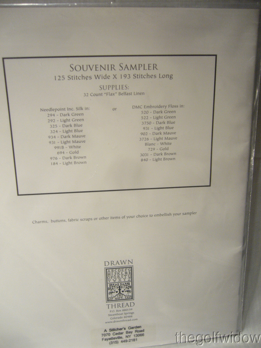 The Drawn Thread Souvenir Sampler New with Two Charms - Stitch Count 125 W x 193 H