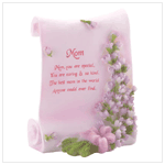 A swag of lavender in relief adorns this pretty pastel scroll-shaped plaque, highlighting the heartfelt testament to a mother's love. Polyresin. 2 3/4 x 2 x 3 1/2 high.