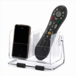 Never lose a remote again! This handy caddy with four separate slots keeps TV, stereo and other handheld remotes right within easy reach. A perfect organizer for any electronics buff! Weight 1 lb. 7 x 5 x 5 high. Plastic and metal. Contents not included.