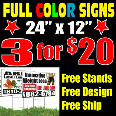 (3) 24x12 Color Signs + Sign Stand + Design + Free Ship