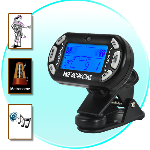 | Our new mini-edition Guitar Tuner Clip is a compact, lightweight, digitally exact, easy to use 3 in 1 guitar tuner.  It can help you tune your guitar or any other string instrument, be used as a metronome, or assist you as a tone generator.  A suitable gift for every guitar and string instrument lover.        This mini tuner has 6 buttons, 3 functions, 2 tuning mode, 1 bright blue back-lit LCD screen, and weighs only 41 grams (which is 1/2 the weight of your Zippo lighter). You can drop it in your pocket or inside any guitar case, and carry it to your studio, rehearsal, concert or anywhere you like.        Easy to use 3 in 1 tuner:    You have more than one instrument, no worries, this is for more than just guitars!  This great Music Gadget can also work for a violin, viola, cello, banjo, mandolin and most other string instruments.        This item is a great choice for re-sellers and dropshippers to list on their webshops. With the normal retail price of similar items costing $40 or more, you can easily make a nice profit from selling these on your internet storefront while at the same time savings your own customers money.  We are happy to introduce this new product to you with a 60-day no M.O.Q. window for you to try and buy yourself.  Available in the Chinavasion warehouse right now, so click "add to cart" to order a sample today and we will ship it out to you tomorrow - guaranteed!Tuner: Clip it to the headstock, or any other position you like. Choose either sound or vibration mode. When a note is played, the tuner can automatically identify the note, and its back-lit LCD display will indicate by how much the note is in/out of tune. There is also an LED light that will turn red/green depends on whether the played note is in/out of tune. A great way to improve your ear tuning ability.Metronome: In metronome mode, you selet the tempo and rhythm of your music, it will make a beeping sound so you can play your music accordingly.Tone Generator: It can generate any note from any of the four major scales: C, F, Bb, Eb.At Glance...   Tuner, Metronme and Tone generator 3 in 1Sound or Vibration tuning modeAutomatically identify a note when tuningClips onto an instrumentCool LCD displayLong battery life |