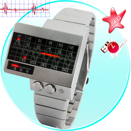 Introducing Alpha Centauri, an all metal red LED watch from the future which manifests infinite coolness by rewriting the rules of how temporal data (time) should be displayed. By watching the heartbeat of the universe on the ECG style display you can see the current time in mesmerizing fashion. So how does this watch tell you the time? Here is how; tap the button on the bottom of the timepiece and watch the ECG light up. There are 124 red LED lights on the watch face. The upper peak LED lights display the hour. The lower peak (trough) LED lights display minutes. How's that for intuitiveness! That kind of "thinking man's" way of telling time is perfect for your average pro blogger, cardiologist, surgeon, physicist, hacker, Trekkie, uber geek, gadget freak, or anybody who is a somebody. We know what you must be thinking, "don't these watches usually sell for close to $200?" You are right. However, with this exclusive factory direct model you are getting the same Japanese LED Watch at only a fraction of the normal retail price. And with that savings you can afford to buy our whole exclusive LED Watch collection, or better yet, list these headturning watches on eBay or your own online store to lock in some amazing profits. Click "add to cart" now to grab some while they are still available, because once they become $500 collectors items in the future you will be kicking yourself for missing this easy opportunity! At a Glance... - Stylish and Cool!