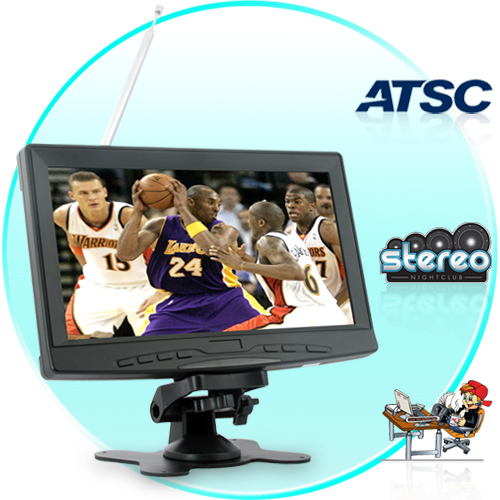 Digital TV set with 9 Inch LCD screen (16:9) with built in ATSC / NTSC tuner for North America and other areas using the new ATSC digital TV standard. Its 2009 and digital TV is here! Don't miss a single minute of your favorite sports and TV shows - if you are ready to upgrade your desktop or car TV to the new digital TV standard, then the CVFQ-E06 is the product for you! With this right-sized 9 Inch LCD TV you have a modern digital television with a built-in tuner, so there is no need for a clumsy converter box. Do you like to watch TV while you are working at your computer desk? Do you need a TV in the RV/Van/SUV to keep the kids entertained? Do you want to watch TV while you are cooking in the kitchen? Then have we got the TV for you! This flat screen LCD television is stand mounted or wall mounted easily and has built in stereo speakers to allow you to hear the action clearly even if you are on the other side of the room. A direct to you low wholesale price with no M.O.Q. (no minimum order quantity) means you can order one DTV for your own use and then put it up on your internet site to sell to others with your own actual experience with this great little TV as a real use write-up of how nice it works. At a Glance... - 9-inch widescreen LCD television with ATSC digital TV tuner.