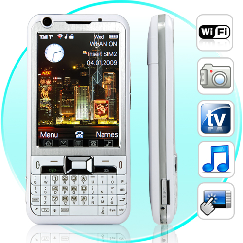 Introducing pure raw performance with stunning aesthetics. The Cloud 9 worldphone comes with every function a mobile phone owner needs these days. From, WiFi, Bluetooth, TV to eBuddy, Opera mini and much more. The Cloud 9 is a beautifully designed, sexy looking cellphone, and feels great in the palm of your hand. What makes the Cloud 9 so special? Well, this full 3 inch touchscreen mobile phone comes with dual SIM slots with dual standby, TV, FM Radio, WiFi, and is fully unlocked so it can be used with any carrier, and supports every GSM system on the globe (quad-band world phone). The Cloud 9 features accelerometer functionality for multimedia applications such as portrait or landscape TV viewing, and whether you prefer touch screen, keypad, or a qwerty keypad, the Cloud 9 full 3 inch touchscreen display offers it all, giving maximum versatility in operating this fashionable mobile phone. Also built into this unlocked WiFi cell phone is a 3.5mm earphone plug-in, allowing you to listen to music in full stereo beauty. The Cloud 9 quadband cellphone comes with POP3 and IMAP4 email accounts setup. Who doesn?ÇÖt check their e-mail 10 times a day? Well, once you've setup your email account just pres send/receive to download your emails. This feature is very useful for people always on the go. It allows you to stay connected even when you?ÇÖre out of the office, or even away on holiday. The CVNM-M86 also supports WAP, so if you?ÇÖre not next to a WiFi connection, you can still go online using a GPRS connection. The Cloud 9 is full-featured interactive intelligent cell phone with a stunning 3 inch touchscreen just like today's most advanced smart phones, only better because it comes with a low OEM china wholesale price. Don't delay, click "Add to Cart" right away and in a few days you could be the proud owner of this state of the art WiFi mobile phone! The Cloud 9 makes an excellent resale mobile phone for your physical/online shop or eBay store front. This wonderful unlocked quadband dual SIM touchscreen with WiFi cellphone is brought to you by the leaders in factory direct china wholesale electronics, Chinavasion. At a Glance... - Unlocked