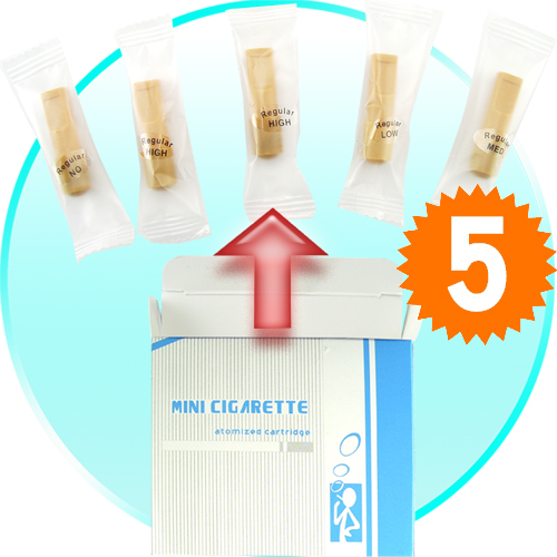 E-Cigarette refill pack with 5 regular flavor refill cartridges for this popular anti-smoking nicotine replacement technology (refill cartridges for the CVSBP-5801 e-cigarette). If you are finding it difficult to kick the cigarette habit, then you can try the safe and easy to use E-Cigarette and these extra nicotine cartridges to give your body the slow adjustment it needs to successfully dump the habit for good. Each refill box contains 5 cartridges containing high to low nicotine doses with a realistic cigarette flavor. A perfect product for our partners who are ready to offer their customers a healthy high-tech smoking alternative, or anyone who needs to source additional cartridges for their existing E-Cigarette. We are offering these nicotine refills at a quantity of at least 5 packs in order to give you the absolute best advantage from our low wholesale price and even better shipping rates. With a required order of 5 refill packs the total number of refill cartridges would be 25 (5 cartridges x 5 packs = 25 cartridges total). At a Glance... - E-Cigarette refill pack with 5 regular flavored cartridges for the CVSBP-5801.
