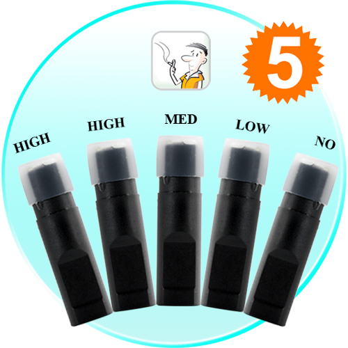 Refill pack for model CVIJ-G202, Electronic Cigarette (Luxury Edition). If you are finding it difficult to stop smoking, then you can try the safe and easy to use CVIJ-G202 E-Cigarette and these extra nicotine cartridges to give your body the slow adjustment it needs to successfully quit the habit for good. Each refill box contains 5 cartridges of varying nicotine strengths (from high to pure flavor). A perfect product for our partners who are ready to offer their customers a healthy high-tech smoking alternative, or anyone who needs to source additional cartridges for their existing E-Cigarette. We are offering these nicotine refills at a minimum order quantity (MOQ) of at least 5 packs in order to give you the absolute best advantage from our low wholesale price and even better shipping rates. With a required order of 5 refill packs the total number of refill cartridges would be 25 (5 cartridges x 5 packs = 25 cartridges total). At a Glance... - E-Cigarette refill pack with 5 regular flavored cartridges for the CVIJ-G202.