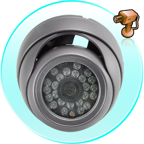 Security Camera Vandalproof Dome with 24 IR lights for great night vision and a 1/3 Inch SHARP CCD image device for great quality color image capturing. This model CCTV surveillance camera includes a high quality 1/3 Inch SHARP CCD image sensor, includes manual aiming adjustment, and includes 24 infrared LED's with auto ON/OFF light detection to support night vision. This video surveillance camera is the perfect choice for small businesses, security conscience homeowners, and anyone needing a 24/7 (24 hours, 7 days a week) video feed. The housing itself is a vandalproof die-cast metal dome that will swivel side to side and up and down, so aiming the camera to the perfect angle is very easy. This model is also waterproof and is suitable for outdoor and indoor uses. Reliable CCTV security at an affordable factory direct China Wholesale Price and our famous one year quality warranty, order yours today and we will ship it out tomorrow! At a Glance... - CCTV video surveillance camera