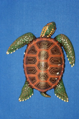 THESE ARE BRAND NEW 6" TURTLES ARE BEAUTIFULLY PAINTED AND REALISTIC. MADE TO HANG ON THE WALL, THEY ARE 3 DIMENSIONAL ON THE FRONT (PROTRUDING LESS THAN 1 INCH) FROM WALL AND THE BACK HAS A RECESSED HANGER SO IT HANGS FLUSH. THEY ARE DURABLE, MADE OUT OF MOISTURE RESISTANT, POLY-RESIN MATERIAL AND CAN BE USED INDOORS OR OUTDOORS, TRY TO KEEP OUT OF DIRECT SUNLIGHT TO PREVENT FADING OVER LONG TERM EXPOSURE.